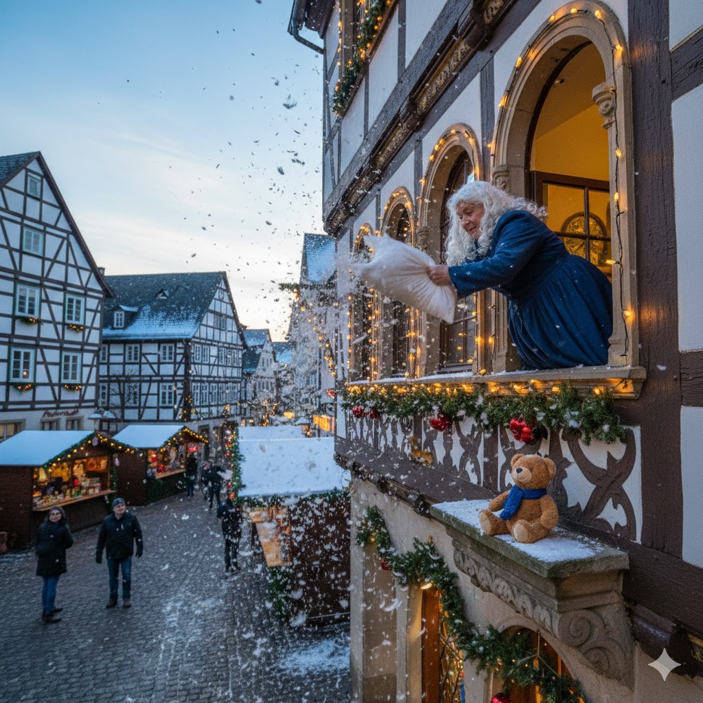 Das absolute Highlight ist der tägliche Auftritt von Frau Holle am Fenster des Alten Rathauses.